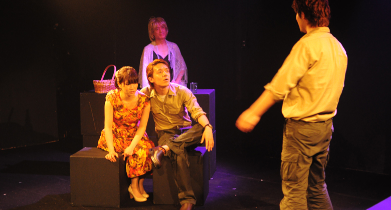時は1950年代、USAとソビエト(現ロシア)の冷戦は宇宙にまで及んでいました。ソビエトはスプートニクでライカ犬を宇宙に送り、後れをとったアメリカはマーキュリー計画でチンパンジーを宇宙飛行士に仕立て上げます。このドキュメンタリー映画を観た際『劇団の小美人・松山クミコをチンパンジー・HAMにしたら可愛いだろうな』という発想から生まれた物語です。ママチンパンジー、兵隊ジャック、アニメ世界の美女。劇団初のストリートプレイ。浦川、黒沢の唄う挿入歌『惑星紀行』はロマンチックなラブソングです。